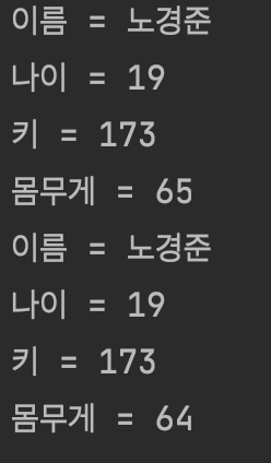 멤버는 이름, 나이, 키, 몸무게를 가지고 있고