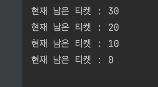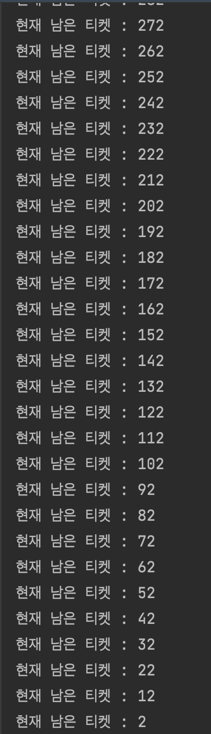 매번 실행할때마다 남은 티켓이 0으로 끝나야하는데 계속해서 결과 값이 변했습니다.