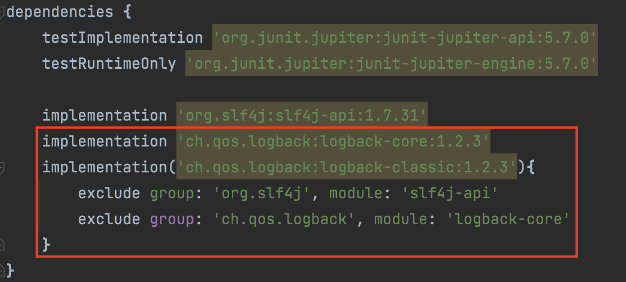 다시 코드로 돌아와서 로깅 프레임워크(logback)을 사용하기위하여 build.gradle 파일에 logback 의존성을 추가해 줍시다.