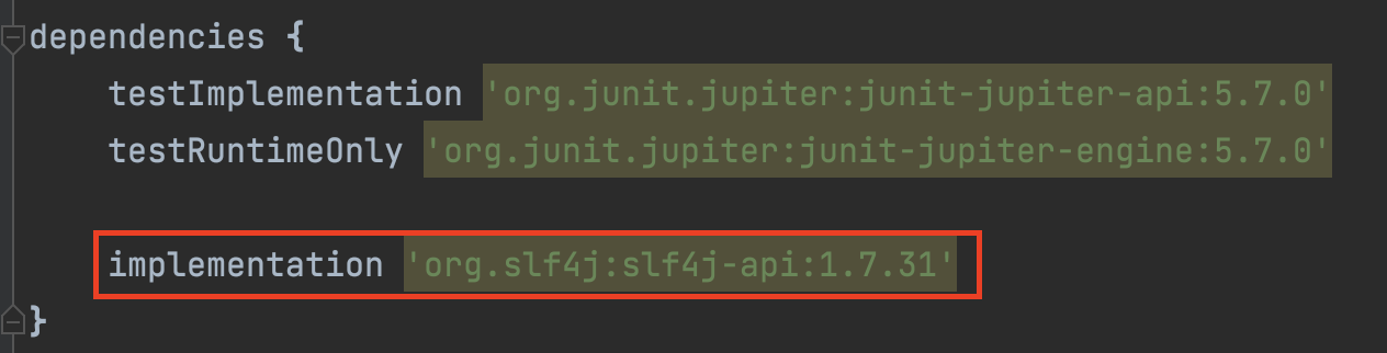 우선, slf4j 를 사용할 수 있는 slf4j 라이브러리를 build.gradle 에 추가해줍니다.